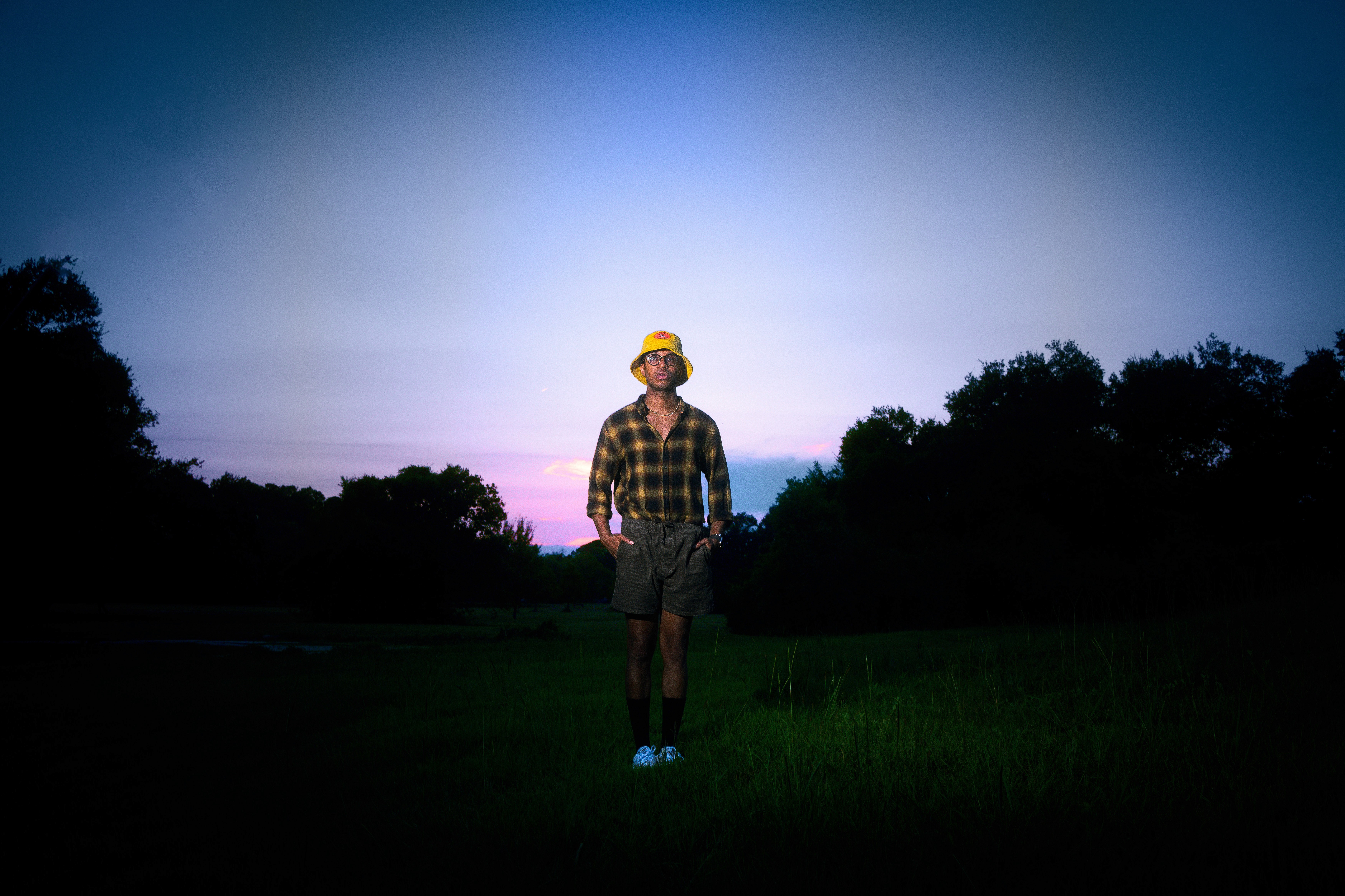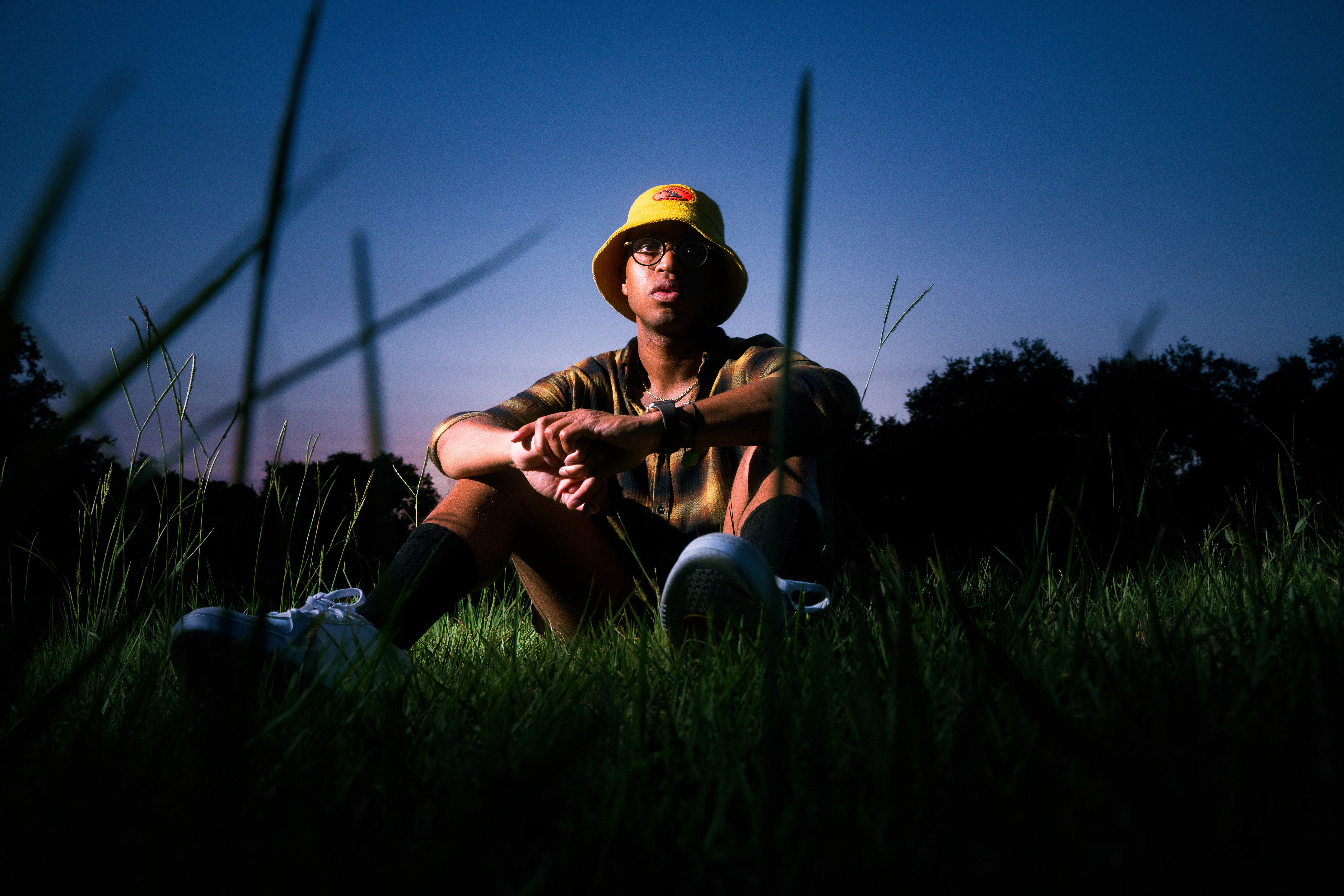 An outdoor evening portrait session with hip-hop artist Pell, captured with bold, colorful lighting and a relaxed, expressive vibe. Shot for Pell’s own promotional use, the images blend music-driven energy with polished, artist-forward visuals.